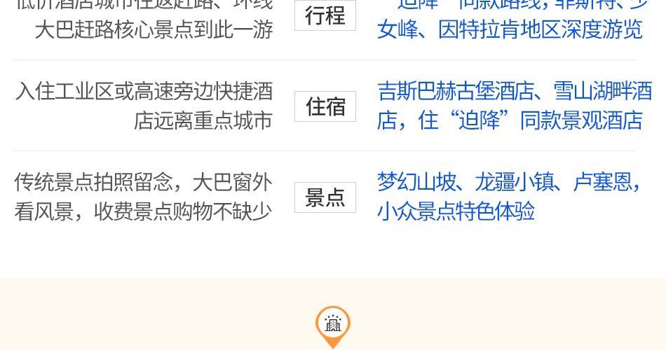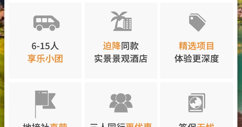 3、本产品内涉及的所有景点、体验项目、游览项目等均为团队旅游产品,团队产品与自由行的散客产品的日期、价格、游览方式有所不同,自由行的散客同类产品信息不具备任何参考价值。