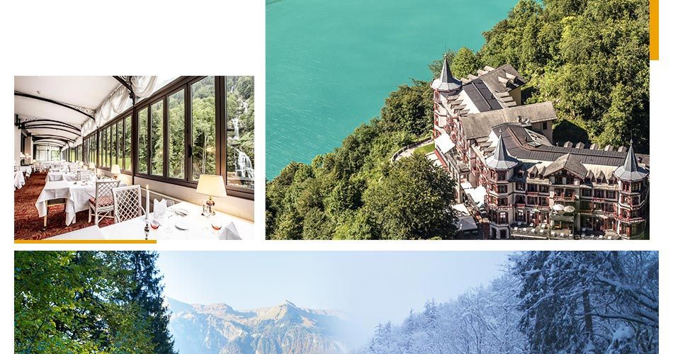 吉斯巴赫酒店,位于布里恩茨湖(Lake Brienz)上方的山丘上,吉斯巴赫瀑布(Giessbach Waterfall)横穿整个酒店,酒店私家码头能够乘船欣赏布里恩茨湖(Lake Brienz)和吉斯巴赫瀑布(Giessbach Waterfall)的美景,还能乘坐欧洲最古老的齿轮小火车前往吉斯巴赫瀑布船舶码头,或者前往巴伦堡露天博物馆(Ballenberg open-air museum)一探究竟。酒店享有瑞士山涧湖畔的美景,坐落在占地22公顷的私家公园中,酒店历史可追溯至1874年,是瑞士著名的历史酒店,经过修复保留了19世纪末美好年代时期( Belle Époque)的典雅风格,其长廊与精致古典家具相得益彰。