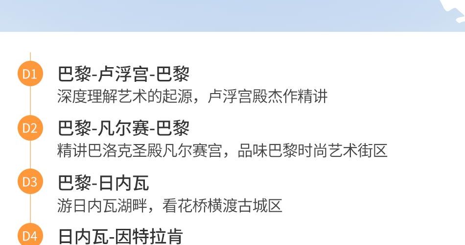 【如遇卢浮宫限流、特别是旺季馆内限制讲解员讲解,届时将退还馆内讲解费10欧元/每位游客】