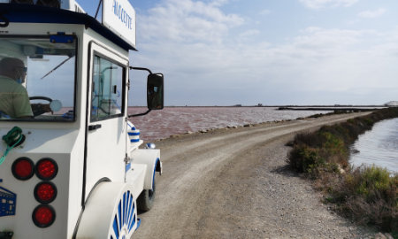 登上粉红盐湖的观光小火车,在艾格莫尔盐湖的中心地区进行一个多小时的游览。粉红的湖水与岸边雪白的石英沙滩相交融,如同草莓雪糕。长期光照和高含盐量湖水,令湖中产生大量丰富的β-胡萝卜素的杜氏盐藻,使得盐湖表面呈现粉红色。