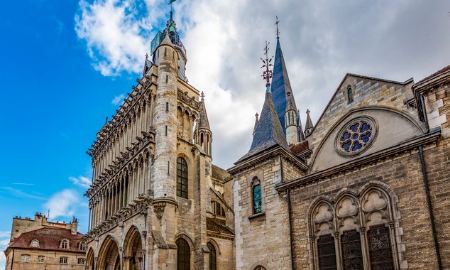 哥特式的传统建筑第戎圣母院建造于13世纪,教堂门面上三列兽形假排水口由两排纤细的圆柱分开,教堂上有一座14世纪的报时钟。对于大多数的第戎人民而言,第戎圣母院是一座具有亲和力的教堂建筑,在这近几个世纪以来,圣母院一直是第戎人民主要的精神、心灵的抚慰。