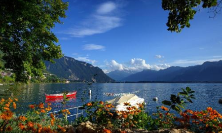 日内瓦湖畔的人间胜景 风光旖旎的日内瓦湖和雄伟的阿尔卑斯山,构成的诗意田园风光,两国国境秀丽风景沿日内瓦湖不断变化交错、一会是法国依云和一会又是瑞士西庸城堡和日内瓦的旧城。整个湖区被列为世界遗产,是一个又一个的保护得十分完好的中世纪小城,路上镶嵌着一块块的石板,每个小镇、小城都就有多处喷泉。传统的房屋建筑和摩登新颖的店家,交织成一处处美轮美奂的奇妙体验。