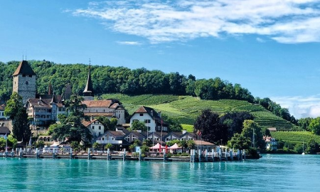 宝石般澄澈的两湖之间,体验人在画中游的胜景 上帝特别眷顾伯尔尼高地上的图恩湖和布里恩茨湖,将如眼珠般美丽而珍贵的湖水留在这里。小镇和村庄星罗棋布,由近及远是满眼苍翠欲滴的绿意,远处的雪山挺拔,阳光在人的鼻子上挠痒痒,四季的变化没有让这田园美景减色一分,山水之间都是好时光。