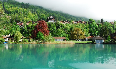 阿尔卑斯山北麓的布里恩茨湖,湖水蓝中带绿,被称为Tiffany高级蓝的湖水,有着“上帝的左眼”的美誉。布里恩茨湖是瑞士最为纯净的湖水,《走遍全球(瑞士)》书上这么描述:“一个极富风情的恬静村子,富有情趣的街道建筑、蔚蓝色的湖水、神秘的湖泊、茂密的森林、可爱的蒸汽机车和阿尔卑斯全景图,瑞士的各种魅力在这里浓缩。