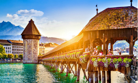 上午前往龙疆小镇,游览龙疆湖及小镇风光。之后前往卢塞恩,游览卢塞恩湖的湖光山色,听狮子纪念碑讲述瑞士人忠贞坚毅的那段历史,以及卡贝尔廊桥和八角型水塔等景点。之后前往苏黎世。
