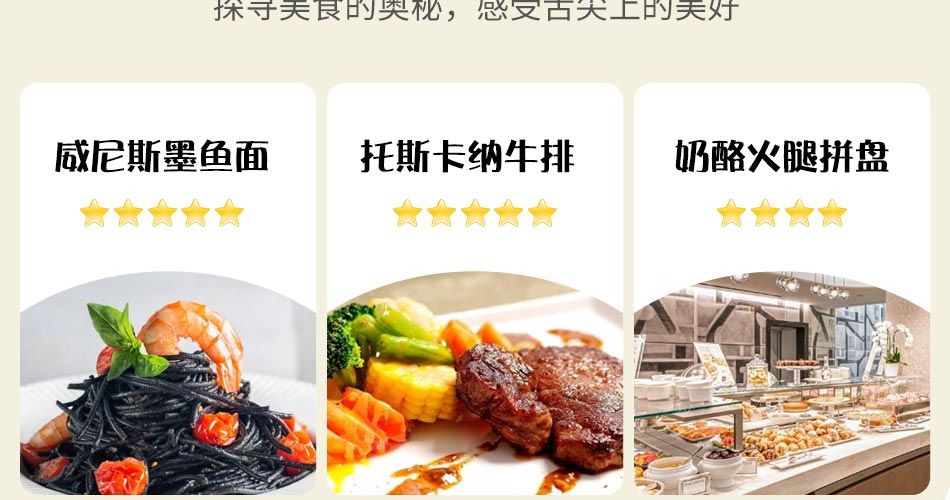 行程内推荐的餐饮全部为当地特色餐,比如,威尼斯最著名的黑墨鱼面,托斯卡纳的牛排等。无法选择其它的菜式、如果菜品并非您的首选,需要提前告知导游以便更换为“鸡肉套餐”或“素食套餐”,但是、无法选择菜品。