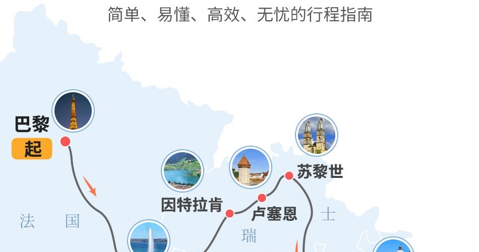 该产品仅日内瓦巴黎段约为5小时45分,其余计划行程均为2到3小时的行车时间。