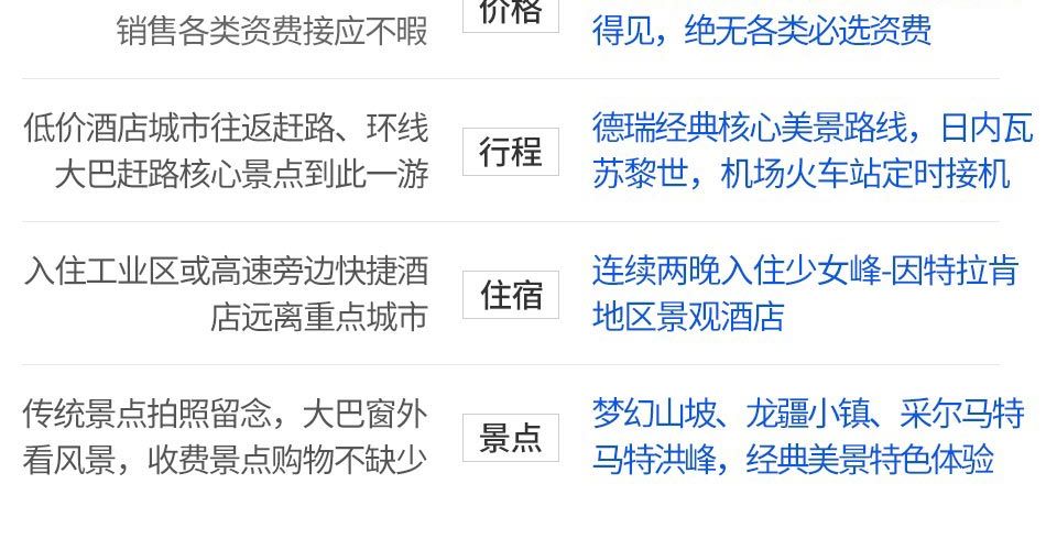 2、产品是否包含少女峰登顶齿轮火车、因特拉肯滑翔伞及菲斯特体验项目?