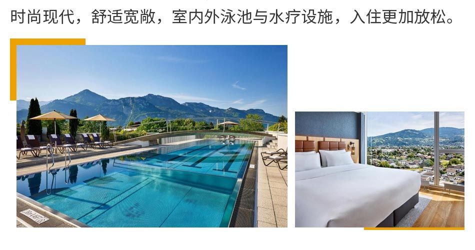 酒店位于弗利姆斯中心位置,可欣赏阿尔卑斯的壮丽山景,酒店直达购物中心,方便购物用餐;Me and All酒店的设计融合弗利姆斯城市特色,清新的设计色调,植物和天然材料,渐进的登山风格内饰,带来酷炫奢华和风格的精致。房间现代化的设计和内饰,高品质的床品和洗漱用品,体验非常舒适;酒店设有一家国际风味的美食餐厅和一家日式餐厅,餐后您还可在酒吧放松,不仅如此酒店还设有1000平米的康体中心和一家电影院,让您将找到旅途中的家,城市中的客厅,轻松惬意的聚会场所,以及活力四射的活动场地。