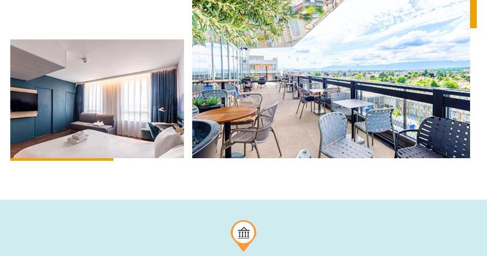 诺富特酒店于2020年开业,是雅高旗下的舒适型商务酒店,酒店的装饰与其自然环境相协调。受到纽约创新酒店概念的启发,它包括一个向酒店客人和公众开放的咖啡厅和面包店区。酒店设有一间餐厅,提供健康的时令美食。在酒店8 层的 Rooftop 46 酒吧俯瞰阿尔卑斯山和侏罗山脉,享受快乐时光。