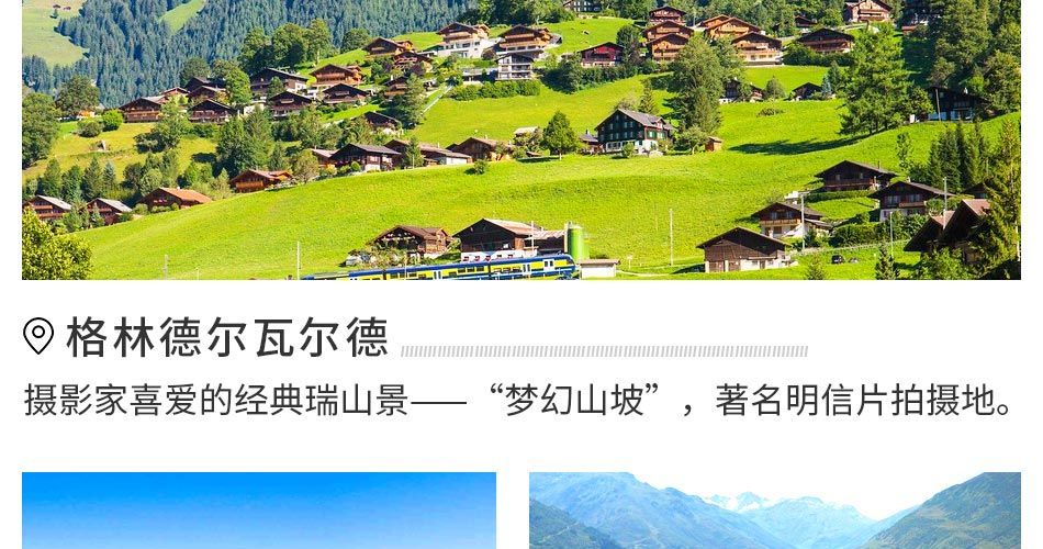 跟随导游乘车依次游览,维尔德斯维尔游览网红景点——红色火车站,格林德尔瓦尔德经典瑞士山景——梦幻山坡,劳特布龙嫩远观少女峰及艾格冰川。