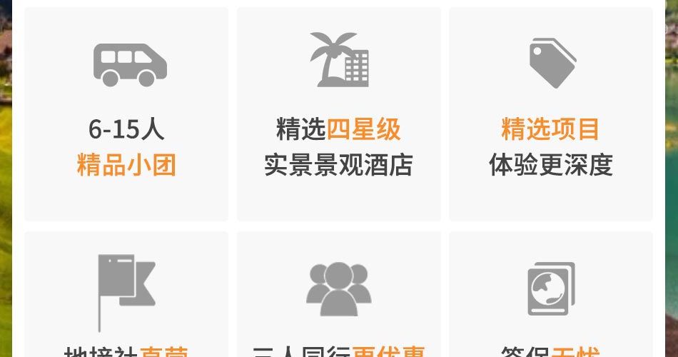 2、本产品内涉及的所有景点、体验项目、游览项目等均为团队旅游产品,团队产品与自由行的散客产品的日期、价格、游览方式有所不同,自由行的散客同类产品销售信息不具备任何参考价值。