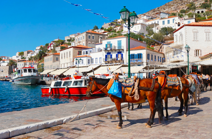 伊兹拉岛位于雅典正南约70公里处,水路需3个多小时航程,属地中海气候,每年的4月底至10月份是旅游旺季。岛上人口约28000人,交通全靠毛驴拖车运送,没有任何机动车辆。优美的景色给小岛增添了很多艺术灵感,故这里有艺术家之岛的美称。在全球卖出上亿张唱片的科恩,就是在这个小岛上创作了很多动人的歌曲。伊兹拉岛本来没有人居住,因为它的土地非常贫瘠,不能农耕。据记载,岛上最早的居住者是迈锡尼人。16世纪,一批阿尔巴尼亚难民逃到这里来,他们主要靠在海上打劫过往船只,做些强迫性的买卖为生,奇怪的是这竟是这座小岛发迹的原因。海盗行径给他们带来的财富使得他们用装满金币的麻袋压舱。17世纪时岛上发展了强大的海上舰队,曾在后来的拿破仑战争时期一度垄断地中海地区的海运业,到1821年,岛上人口到达了三万之多