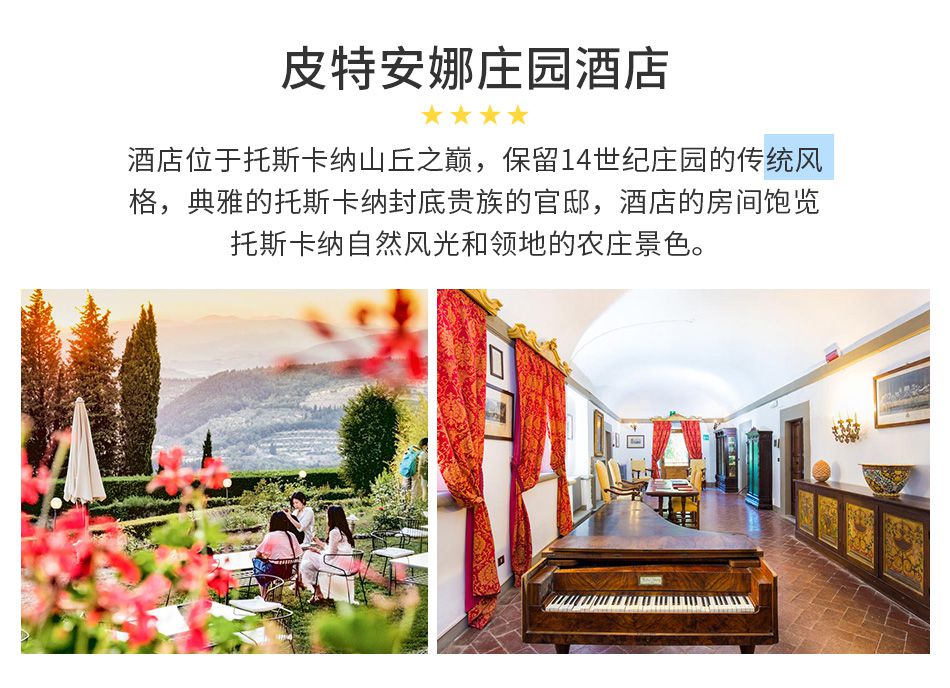 酒店位于托斯卡纳山丘之巅,保留14世纪庄园的传统风格,奢华、典雅的托斯卡纳封底贵族的官邸,酒店的房间饱览托斯卡纳自然风光和领地的农庄景色,华丽的传统建筑,古典而优雅的房间内饰,时代传承的家具,酒店的餐厅提供传统托斯卡纳菜肴,夏天、在庄园美丽的花园内可以享受餐点。