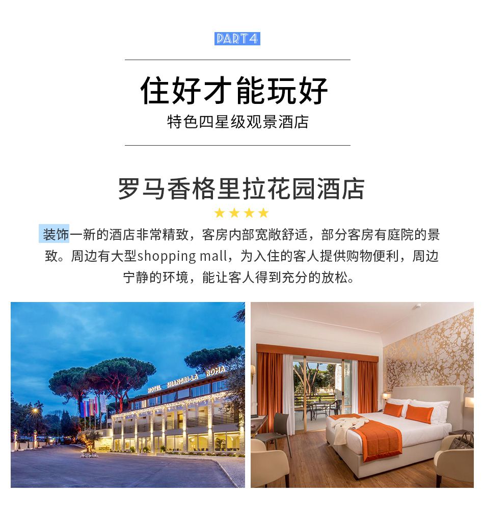 住宿 罗马香格里拉花园酒店或同等级4星级酒店