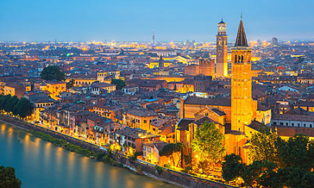 维罗纳拥有古老的城堡与教堂,有保存完好,现仍用于上演大型剧目的,世界第三大的古代竞技场。罗密欧与朱丽叶的凄美爱情故事就发生在这座散发着浪漫气息的古城,而今古城已成为永恒爱的象徵,是人们心中对爱的最美好的向往和追求的圣洁之乡。