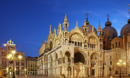 简称圣马可大教堂,是矗立于威尼斯市中心的圣马可广场上。始建于公元829年,重建于1043~1071年,它曾是中世纪欧洲大的教堂,是威尼斯建筑艺术的经典之作,它同时也是一座收藏丰富艺术品的宝库。