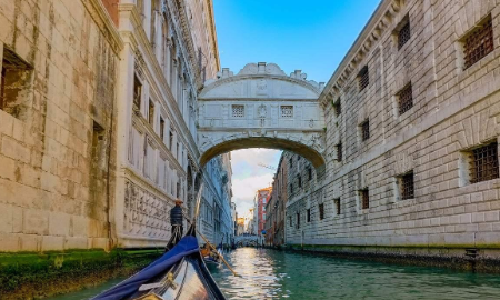 叹息桥是古代由法院向监狱押送死囚的必经之路。叹息桥造型属早期巴洛克式风格,桥呈房屋状,上部穹隆覆盖,封闭得很严实,只有向运河一侧有两个小窗,当犯人在总督府接受审判之后,重罪犯被带到地牢中,在经过这座密不透气的的桥时,只能透过小窗看看蓝天,从此失去了自由,不自主的发出叹息之声。听说恋人们在桥下接吻就可以天长地久,而电影「情定日落桥」就在这取景的。