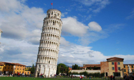 比萨斜塔是意大利比萨城大教堂的独立式钟楼,位于意大利托斯卡纳省比萨城北面的奇迹广场上,是世界著名的景观,也是意大利标志之一,被联合国教育科学文化组织评选为世界遗产。相传在公元1590年,伽利略曾经在比萨斜塔上做了一个自由落体实验,并推翻了亚里士多德的观点。