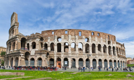 位于罗马中心的壮观的斗兽场是古罗马当时为取悦凯旋而归的将领士兵和赞美伟大的古罗马帝国而建造的,是古罗马帝国专供奴隶主、贵族和自由民观看斗兽或奴隶角斗的地方,是罗马最著名的历史遗迹。斗兽场在建筑史上堪称典范的杰作和奇迹,以庞大、雄伟、壮观著称于世。虽只剩下大半个骨架,但其雄伟之气魄、磅礴之气势犹存。
