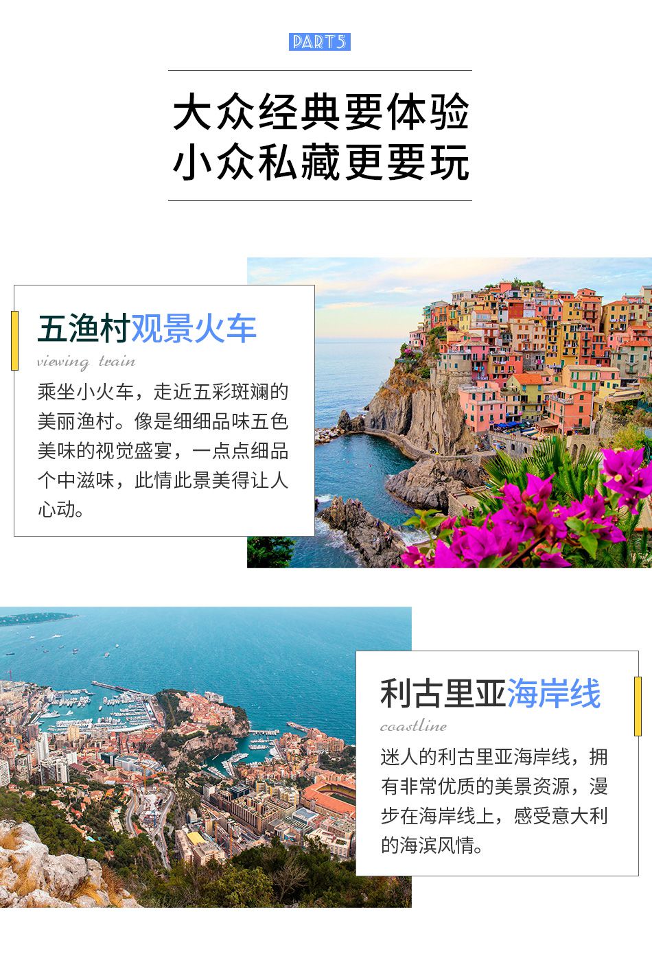 【如遇恶劣天气或者铁路公司罢工等因素导致无法游览五渔村、行程将自动更改为乘坐大巴车或其它形式游览海岸线城市】