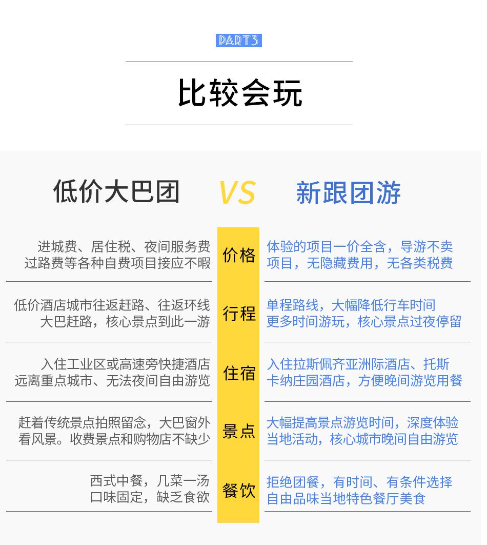 3、本产品内涉及的所有景点、体验项目、游览项目等均为团队旅游产品,团队产品与自由行的散客产品的日期、价格、游览方式有所不同,自由行的散客同类产品信息不具备任何参考价值。