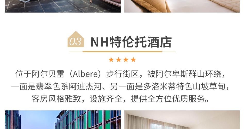 夜宿:NH特伦托酒店 或同等4星级酒店