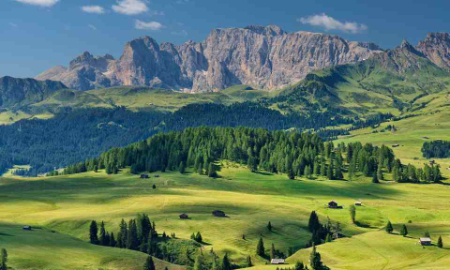 休斯山,位于加尔代纳山谷和施勒恩峰之间,西部与施勒恩峰-卡提纳自然公园接壤。虽然说它是山,却更像是高山草甸,如波浪般起伏,形成300米左右的落差。这一地区一直是优良牧场,搭配上标志性的白云岩,便更加吸引眼球。欧洲的高海拔高山草甸是在意大利多洛米蒂休斯高原,春夏,这里是一片花海;冬天则是白茫茫的滑雪圣地。由于地域广阔,还能欣赏到附近的很多山脉,比如塞拉山组,玫瑰花园闪族和长石山等等。