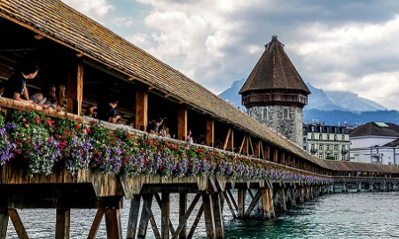 卡佩尔廊桥是卢塞恩的重要标志,是卢塞恩的水上城墙。水塔与花桥一个伫立,一个横卧,构成绝妙的水塔廊桥美景。