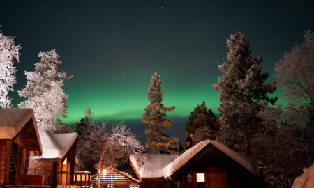 无需乘坐大巴追猎极光,当晚入住的地方,就是观测最动人的位置,在北芬兰的拉普兰地区,独特的小镇伊纳里湖畔区(Inari)的伊瓦洛,它坐落在北纬 68.9°N,北极圈以北大约 300 公里处,是观测北极光的好地方。无需极光向导,前往远离灯光的野外,通过极光预报和云层的观察,找到最适合观测北极光的地方停下来,感受这片土地的宁静,再伴随北极光的舞动“背景”。