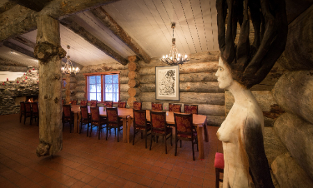 极光餐厅(Aurora Restaurant)餐厅位于Kakslauttanen Arctic Resort景区的中心地带,完全的拉普兰风格的装修和餐具,地道的萨米美食,让人流连忘返。它还曾获得2012芬兰年度美味餐厅称号。所有原材料来自当地驯鹿农场及冰湖水中的鲜鱼,各种当地风味来源于拉普兰的湿地和森林是莓类的宝库,越橘,蓝莓以及覆盆子也是产量惊人,多被用来制作甜点和果汁。