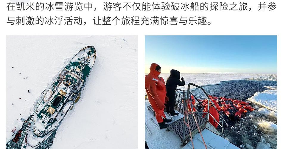 破冰轮包含破冰轮体验和冰浮活动,由活动方安排的英文向导随行,身高1.4米以下儿童可以正常登船,但是不能参加冰浮,活动费用不变。
