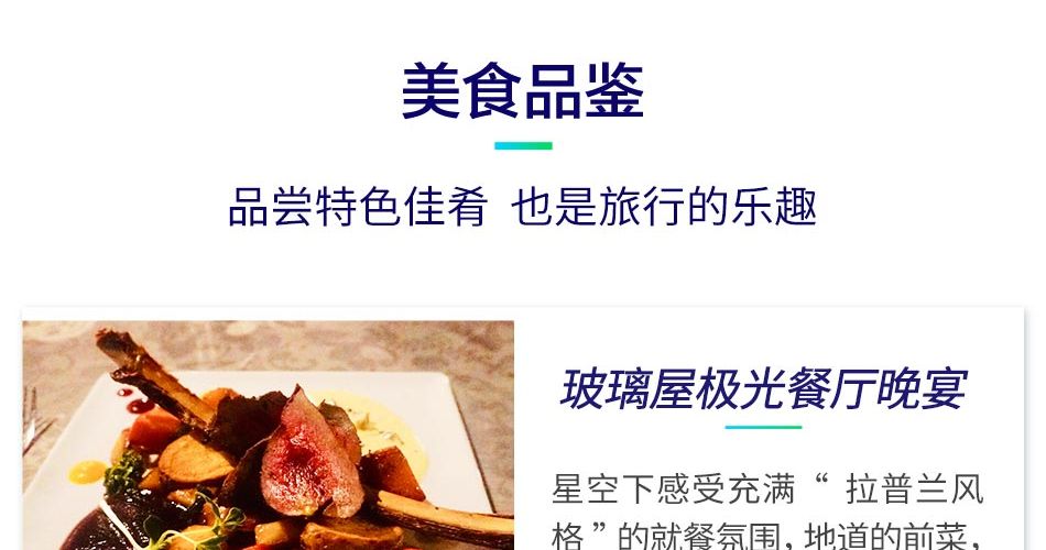 行程内包含早餐,午晚餐自理,玻璃屋和帝王蟹活动均包含餐饮,不含其它餐饮并且圣诞期间北极圈内可能会有就餐不便的情况,我社联络营地及各个酒店附近餐厅提供芬兰传统热食。同时,敬请旅客自行准备一些熟食。