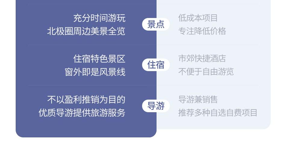 根据本产品游客团后对体验项目投票:狗拉雪橇 > 破冰轮 > 帝王蟹 > 萨利色尔卡雪地活动。根据未参加的游客遗憾榜:狗拉雪橇为“未选择最遗憾的项目”。因此,议游客“不可错过”萨利舍尔卡极光度假村的“狗拉雪橇”。