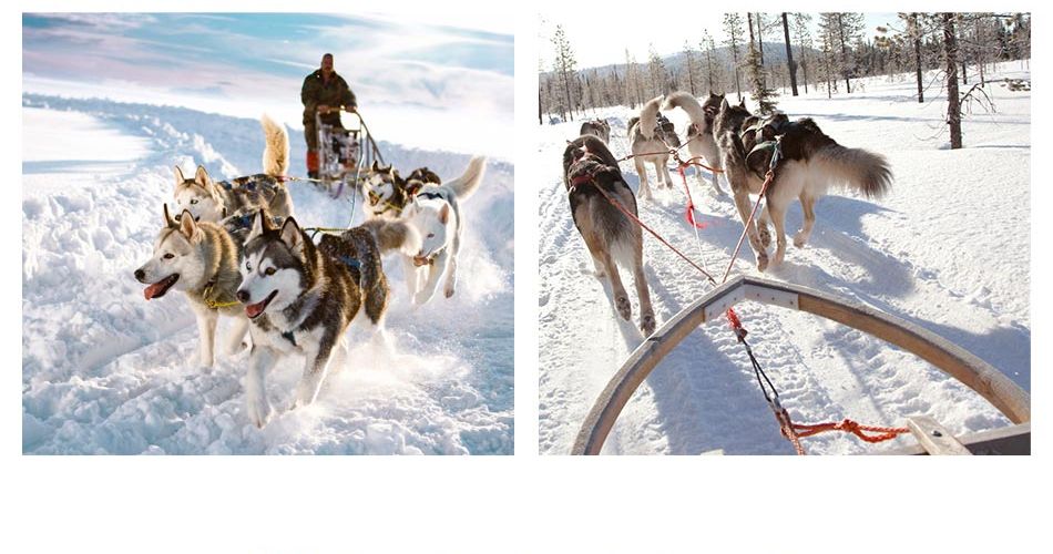 参观雪橇犬营地(kennel)先与雪橇犬建立互相信任的感情,在当地领队的帮助下,自行捆绑缰绳组建狗拉雪橇狗队(一般为6-8条雪橇犬为一组团队),2-4人为一组,雪橇犬在原生态的冰冻丛林里或结冰的湖面上尽情的飞驰。活动时间约为1小时10分钟,具体路线取决于天气,具体分组由当地向导决定。(4岁以下无法参加狗拉雪撬活动项目,全程需家长陪同;4-11岁儿童享受儿童价,但需父母在同一雪橇上陪同,不可以单独乘坐。)安全提示:【所有的雪地项目具有一定的危险性,并且普通旅游保险并不包含雪地活动及滑雪项目,请查阅保单】