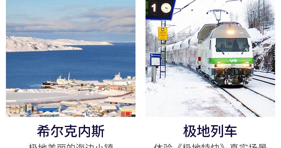 极地特快 VR极地列车将带给你一趟独特的冰原旅途体验,乘坐冰原列车从赫尔辛基前往罗瓦涅米,一路欣赏芬兰纵长国土的雪景变幻。坐着火车穿越极地,除了近距离感受拉普兰冬季雪景之外斯堪的纳维亚半岛美丽的峡湾和冰蚀的湖群,驯鹿的身影跃于林间,芬兰狐留下了难觅的足踪,更能体验好莱坞电影《极地特快》(the polar express)真实场景。
