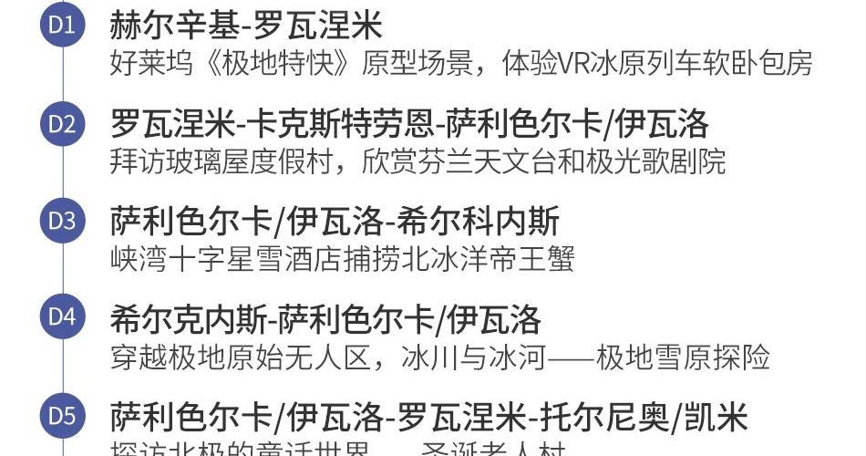 注:12月24日团期为反线行程,去程凯米,回程罗瓦涅米,全程游览内容一致,不影响全程体验,该调整不视为行程变更!