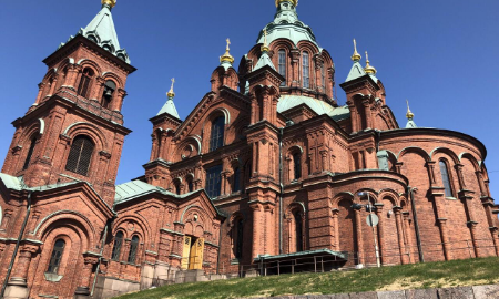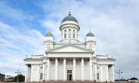 坐落于议会广场前的赫尔辛基大教堂是赫尔辛基出名的建筑,绿色的拱顶十分醒目,无论在市区的哪个角落都能看到这座器宇非凡的乳白色绿顶建筑,因此也被称为“白教堂”。