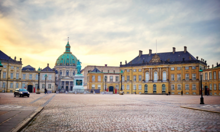 阿美琳堡王宫于十八世纪中叶建造,位于哥本哈根市区东部,与小美人鱼的位置距离不是很远,是王室的主要宫殿。王宫位于八角广场四周,由四座完全一样的宫殿组成。四座宫殿几度易主,十八世纪末才由王室居住。现在,每当女王身在王宫时,其所在建筑物上便会升起丹麦的国旗。游客可以参观其中的两座宫殿,一座现为皇室家族的博物馆,另一座为女王迎接外宾的场所。