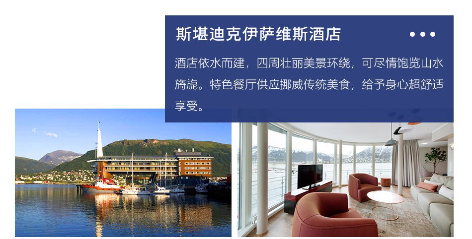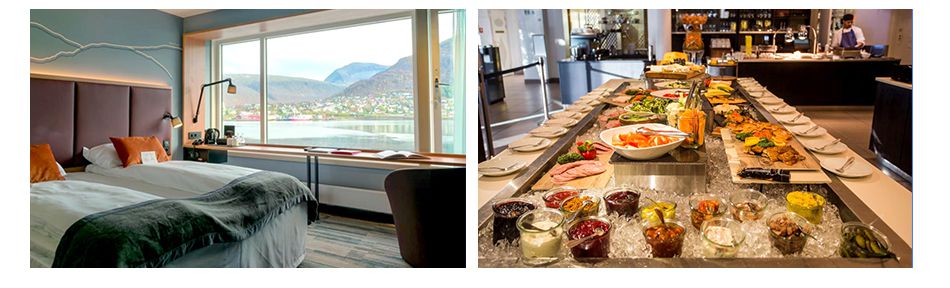 特罗姆瑟伊萨维斯酒店是一座的造型很特别的现代化建筑,坐拥特罗姆瑟风景如画的水边位置,享有港口和城市的壮丽景色;相隔峡湾可以看见对面的极地博物馆。2017年酒店早餐获得全国酒店最佳早餐奖。酒店附近的Hildr gastrobar餐厅、主厨根据兴致,选用新鲜食材制成美味、小份的食物。酒吧内部洋溢着猎人小屋的味道,让人不禁回想起上世纪60年代。