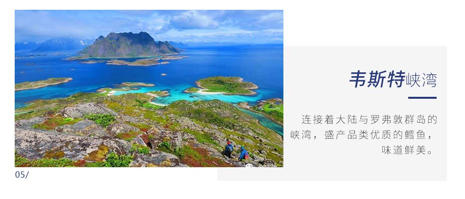 韦斯特峡湾(Vestfjorden)是挪威西北部峡湾,大陆与罗弗敦岛之间的水域,是挪威海伸入陆地的部分。长161公里,湾口宽80公里,峡湾海域开阔,是有名的旅游景点,特别是在冬季观赏逆戟鲸成为了一个热门的项目。峡湾盛产鳕鱼,这一地区以渔业为主,在挪威的餐厅能够品尝到优质的鳕鱼和各种海鲜。