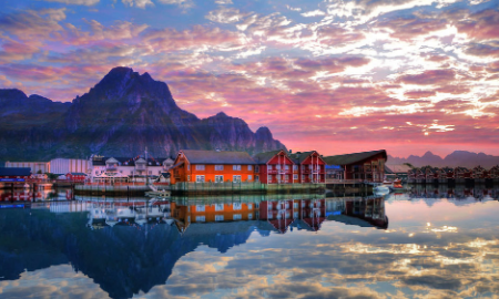 Hamnoy是莫斯克斯内斯岛上三个最美的小渔村之一,当你站在罗弗敦Hamnoy小渔村里面的时候,有一种恍如隔世般宁静穿越的感觉。在2014年全球最震撼的照片里,Hamnoy渔村就位列其中。