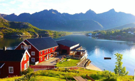 入住罗弗敦群岛水上五星木屋酒店,享受更美更精致的当地人生活 原生态的挪威渔村,传统的渔民小屋,此地已成为当地人在夏天尽情享受大自然赋予的浪漫度假胜地。渔村滨海风光十分旖旎难得,蓝天、白云、清澈的海水,闻到的是鱼腥味,吃到的是新鲜的海鲜。阳光下的海面清澈平和,美不胜收。 在这里,你可以和阳光、碧海来一次彻底的接触;在这里,你可以领略到原汁原味的北欧渔村风情,欣赏海上极昼的日出日落。 酒店的Kjøkkenet Restaurant餐厅供应罗弗敦地区的传统菜肴。