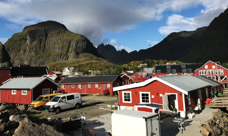 从陡峭的Reinebringen山口前往,是欣赏雷纳有利地点,随后前往哈姆诺伊村(Hamnøy)这条小村只有一家餐厅及一个渔民小屋,同样也是摄影的经典场景之一,在村口西面前往雷讷的桥上就是有利的拍摄角度,当天如果因为天气原因、体力原因、或儿童无法攀Reinebringen山,当天前往哈姆诺伊村拍摄,在这里也能拍到海水、峡湾、雪山、渔村等经典主题。