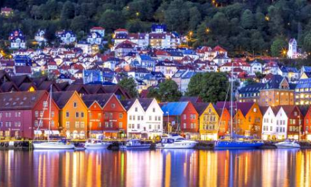 早餐后,自由参观挪威第二大城市—卑尔根,游览卑尔根老城区,鱼市等景点,乘坐弗洛伊恩山索道登顶,俯揽卑尔根全景;