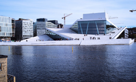 奥斯陆歌剧院坐落于奥斯陆峡湾,临近中央车站,外观似船,是建筑学上的杰作。这座由大理石和玻璃建造的宏伟建筑是歌剧和其他文化活动的举办地。游客可以登上屋顶漫步,饱览奥斯陆市容美景。