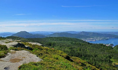 我们可以从市中心乘坐弗罗伊索道,几分钟就能将你带到弗罗伊恩山(Fløyen)的观景台。这座缆车在2018年将迎来它运营100岁的大日子。在山顶能够俯瞰卑尔根市的全景。海港、峡湾以及整座城市整齐排列的木房子和环绕卑尔根的山头全部尽收眼底。山上还有儿童游乐场和寻宝等亲子活动。索道的山下市中心站距离鱼市(Fisktorget)仅200米左右。
