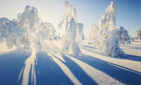 芬兰北部的萨利色尔卡,位于北极圈内 500 公里的北拉普兰,是一块尚未遭到人为破坏的荒原处女地,也是地球上靠北的旅游胜地。萨利色尔卡的自然景观与芬兰其他地区极为不同,由于特殊的极地气候,树木线以北没有高大挺拔的树木,只有矮小的树丛在顽强地与严寒抗争,给人一种荒蛮而又神圣的感觉。