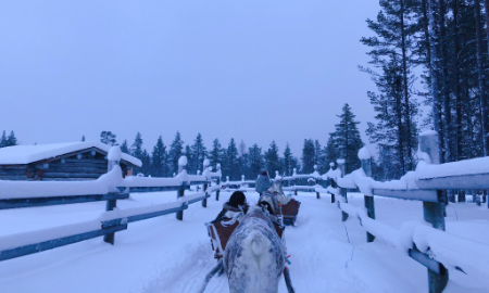 早餐后从萨利色尔卡出发,前往圣诞老人村所在地-罗瓦涅米,我们将停留在圣诞老人村,在这里你不仅可以欣赏童话般的景致、近距离接触圣诞老人的驯鹿,还可以与圣诞老人合影留念,并且邮寄圣诞专属邮票和明信片。在结束了与圣诞老人的亲密接触后,出发前往芬兰与瑞典交接的托尔讷河上之城托尔尼奥,夜宿Cape East Spa Hotel极地温泉酒店或同等四星级酒店。