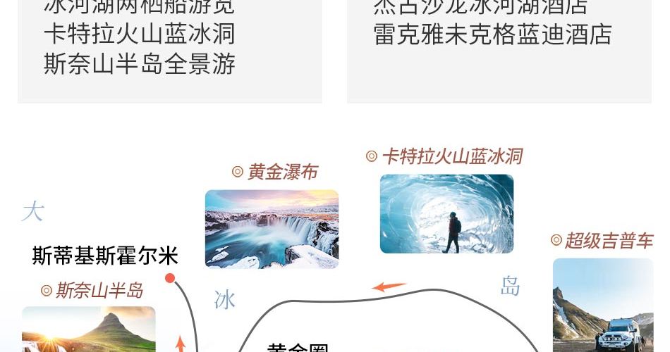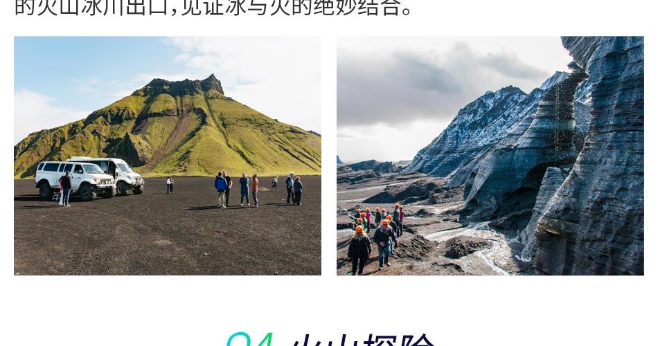 活动流程都是先乘坐超级越野车前往国家冰川公园深处,随后步行探险火山和冰川,最后前往冰洞的内部结构游览,活动时间约为3小时。